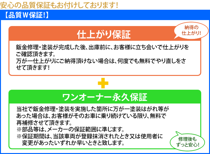 ※ お車の色、修理する場所や損傷具合によって、追加料金を頂く場合がございます。(例:屋根等)